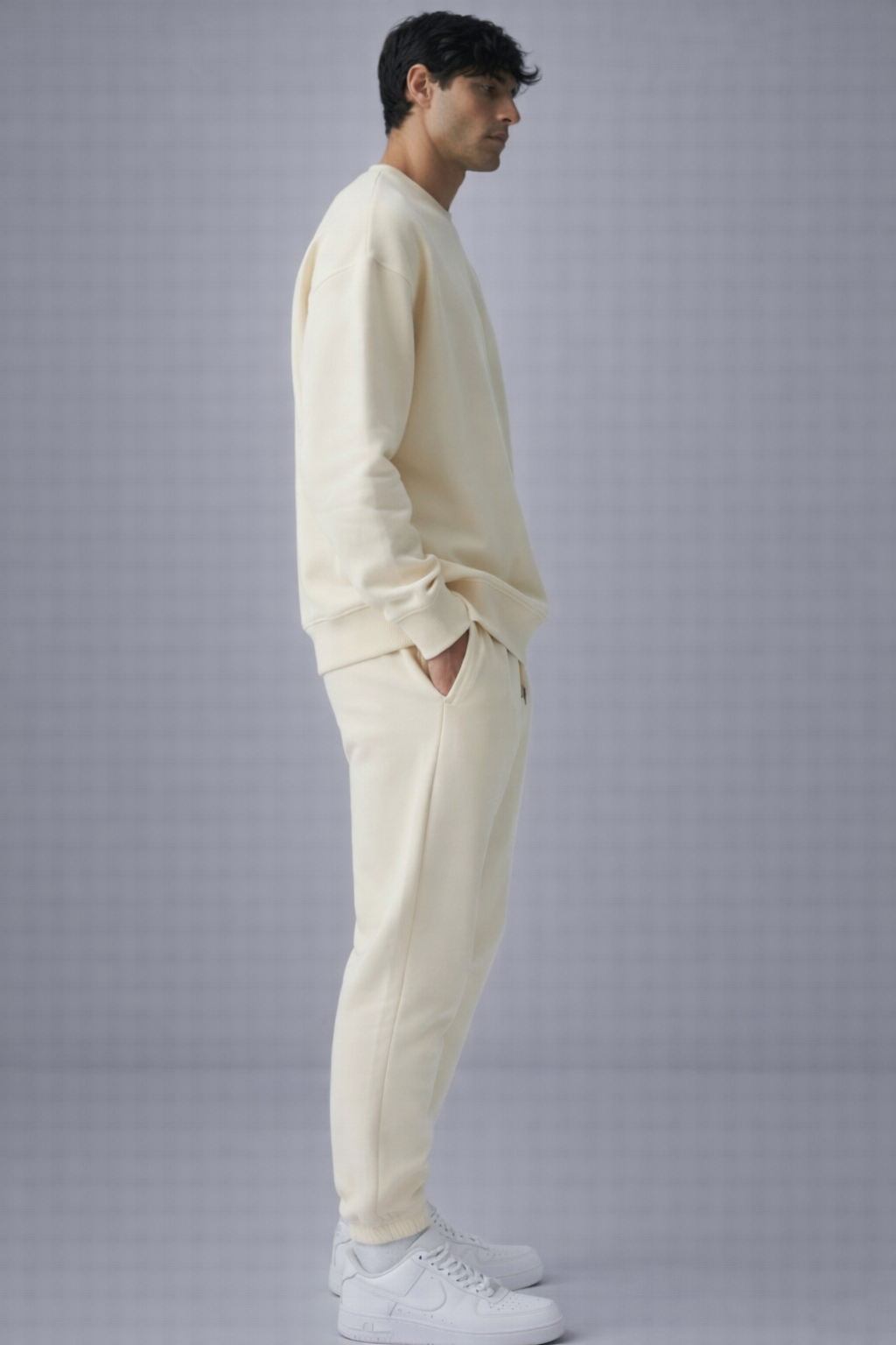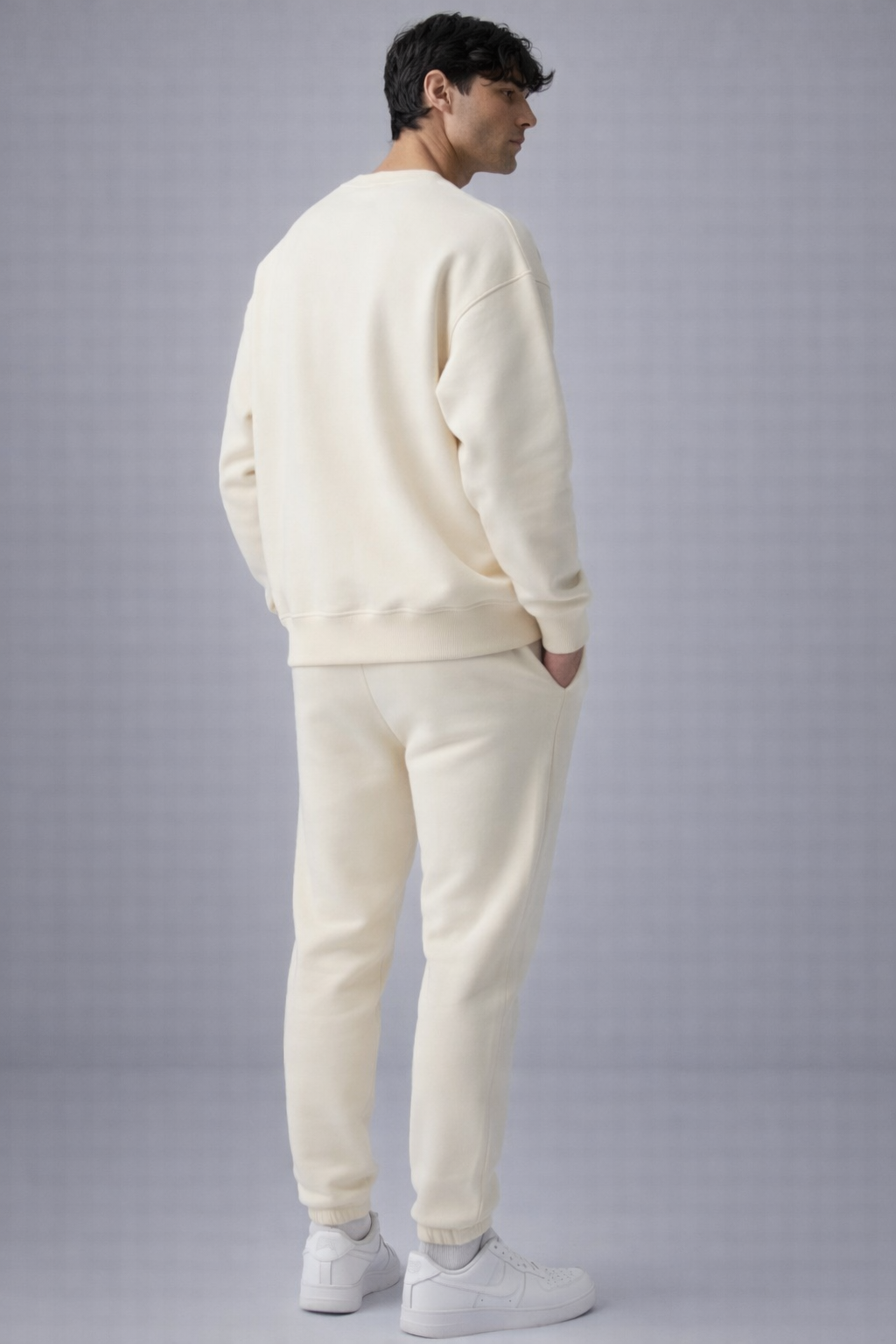 This cream fleece tracksuit has a clean, soft look that works well for everyday wear. The sweatshirt feels smooth on the inside, and the joggers match perfectly with a relaxed fit. It’s simple, comfortable, and easy to style whether you’re at home or heading out.