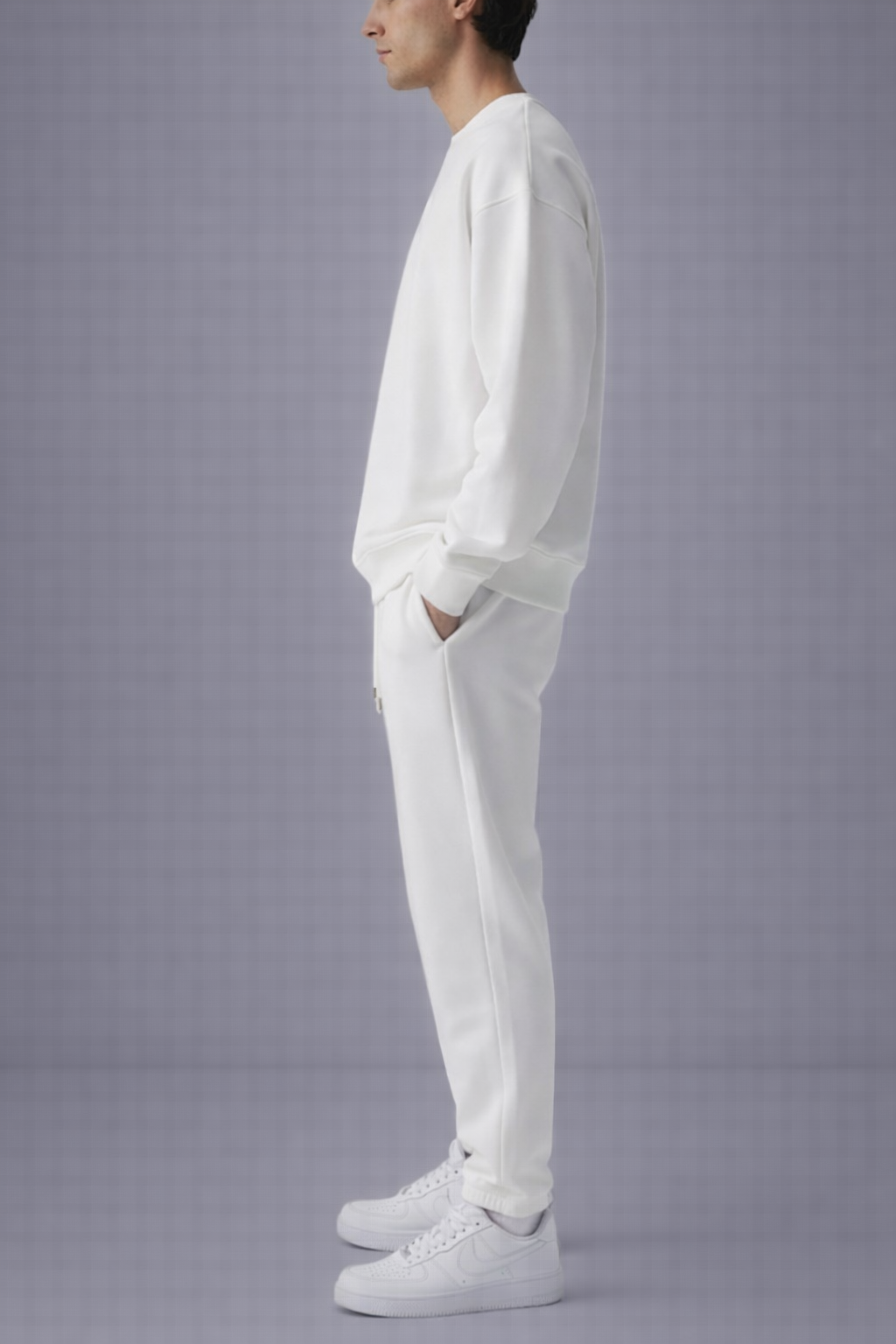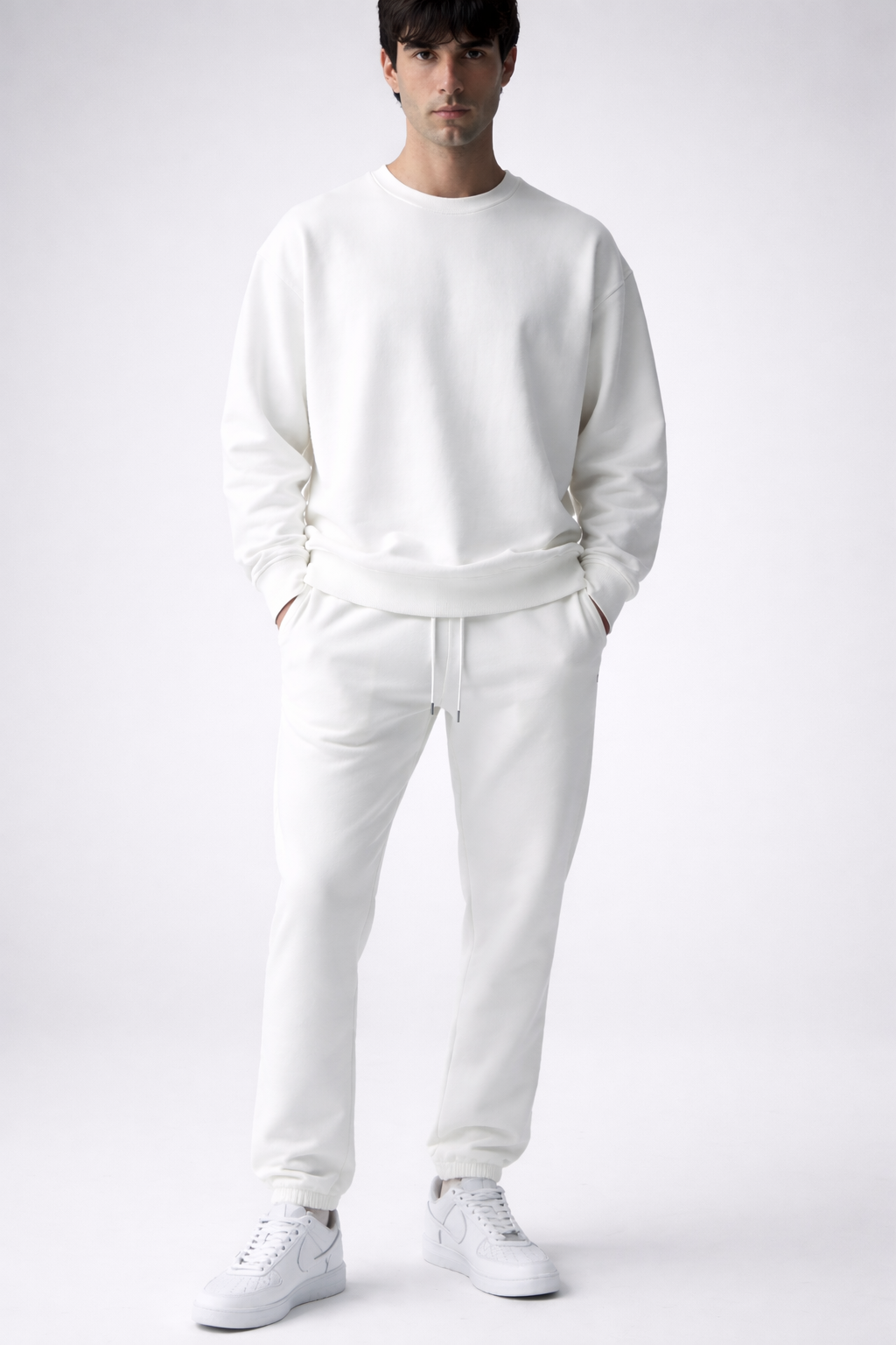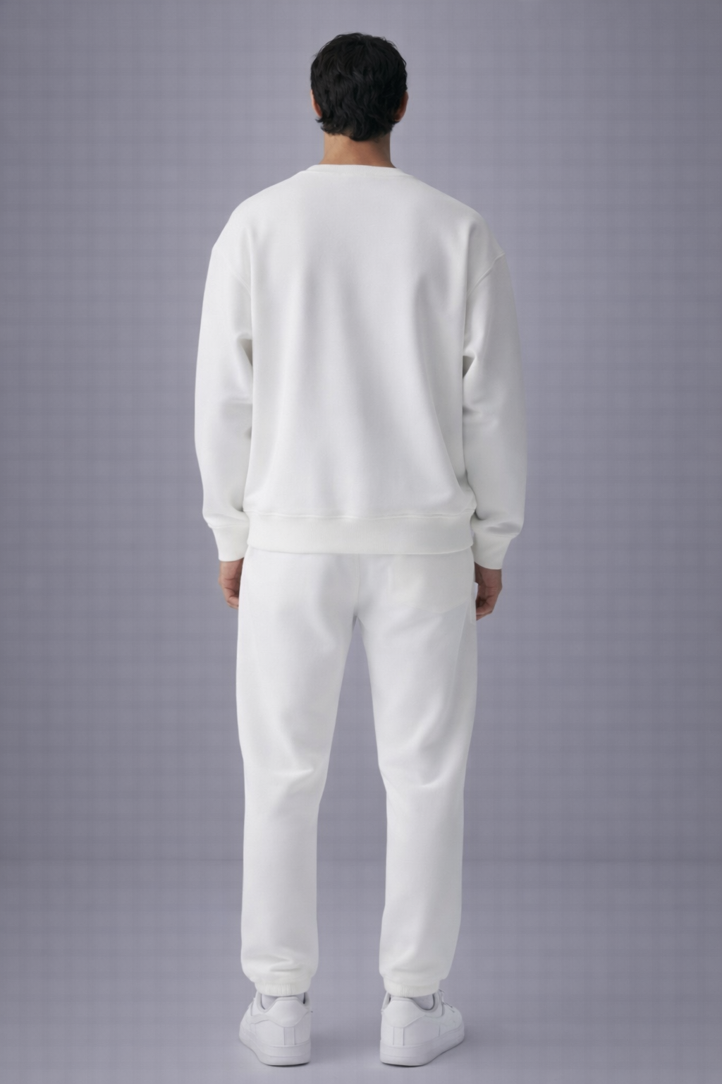 This ivory tracksuit gives a clean and relaxed look with soft fabric that feels good all day. The sweatshirt has a smooth finish and a comfortable fit, while the joggers match perfectly with an easy stretch waistband and tapered legs. It’s a great pick if you want something simple, fresh, and comfortable for everyday wear.