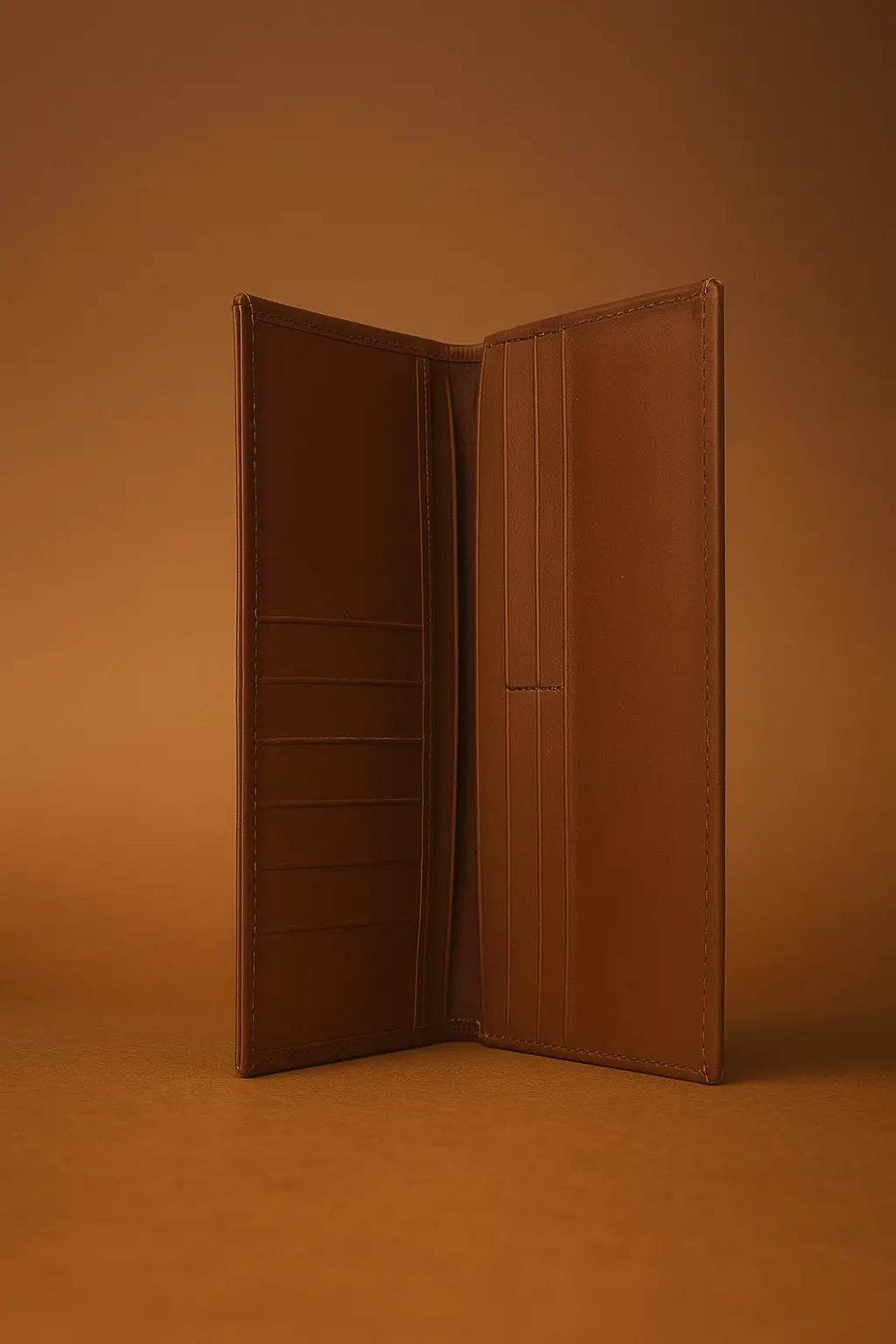 Classic Tan Leather Long Wallet – Slim & Stylish Organizer