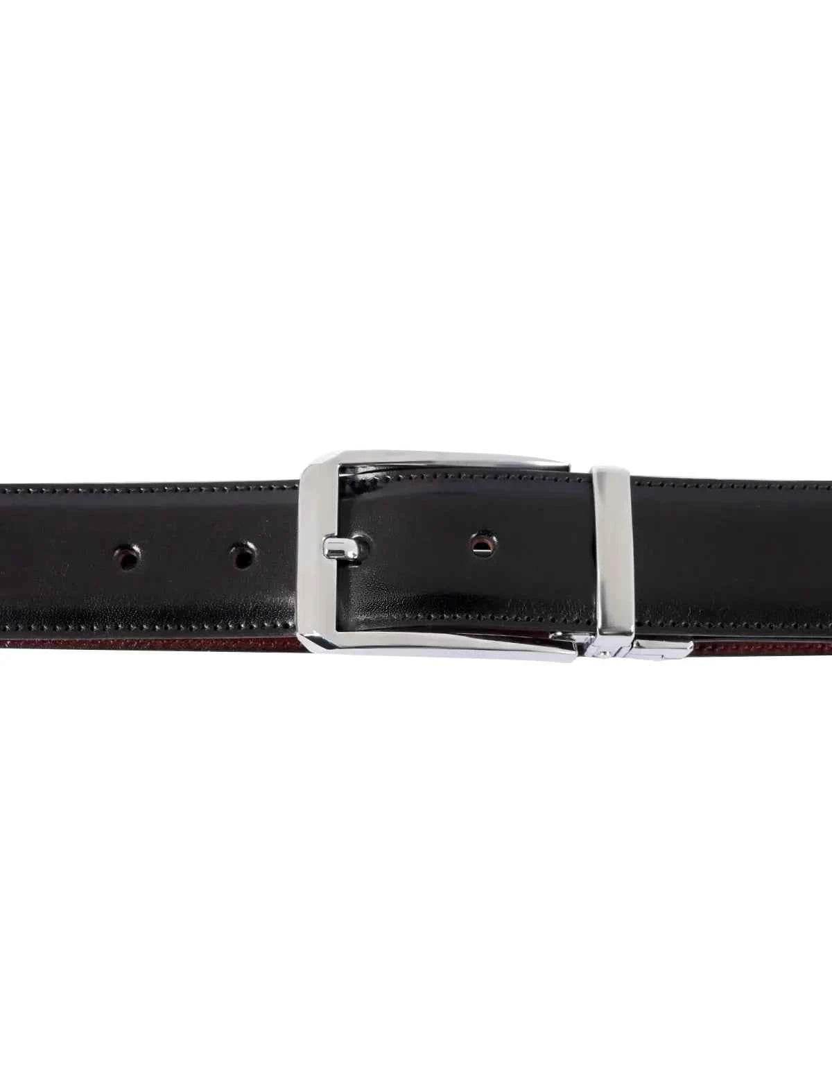 This black leather belt is crafted for sophistication, featuring a polished silver buckle that enhances any formal or business attire.