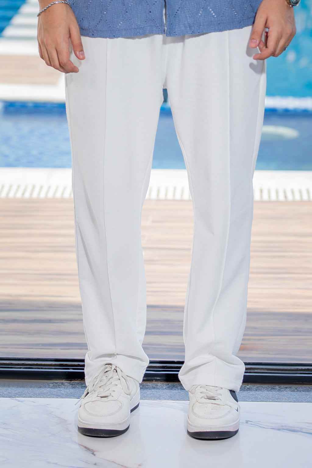 Side Profile Relaxed Trousers - White Comfort Fit
