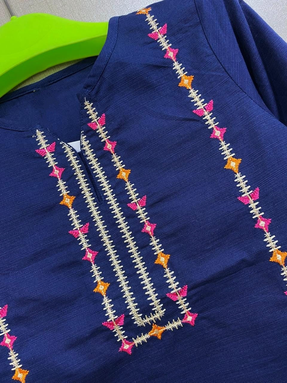 Elevate your girl’s winter wardrobe with this Blue Khadar Embroidered Shirt. Crafted from soft and warm khadar fabric, it features elegant embroidery, making it perfect for special occasions and casual outings.