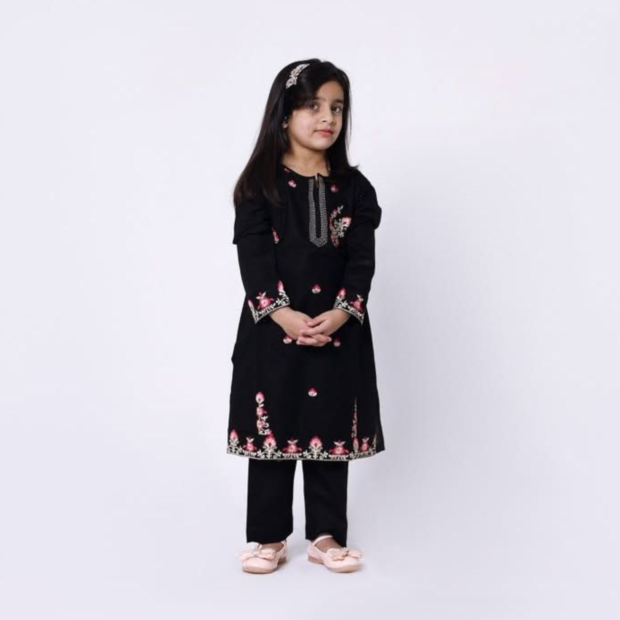 Elevate your girl’s winter wardrobe with this Black Khadar Embroidered Suit. Crafted from soft and warm khadar fabric, it features elegant embroidery, making it perfect for special occasions and casual outings.
