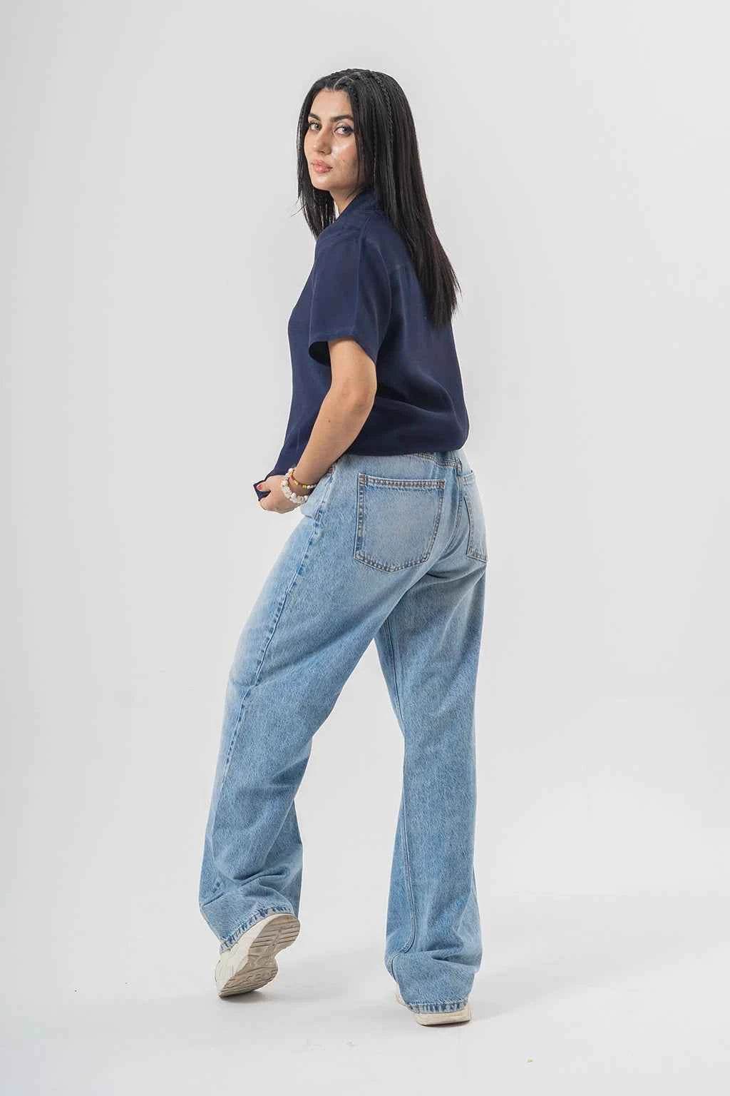 Modern Wide-Leg Baggy Denim Pants in Light Wash