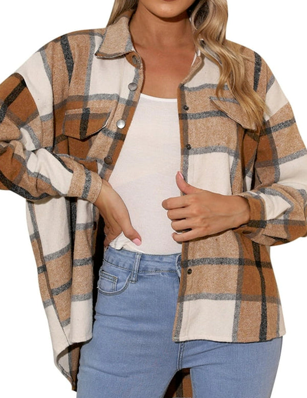 Stay cozy and stylish with this soft fleece checkered jacket. Perfect for layering on chilly days, it combines warmth with a trendy oversized look.