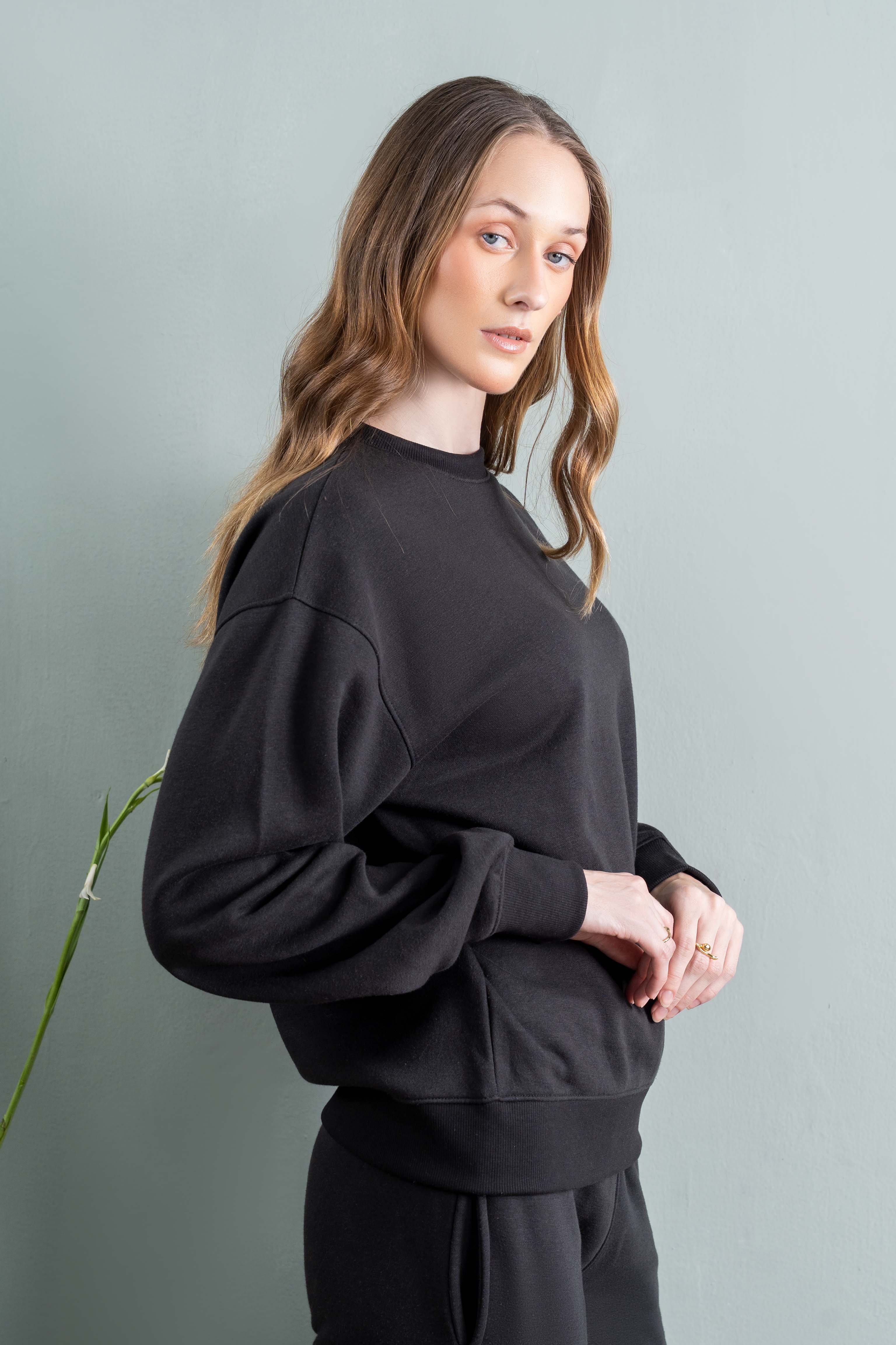 A clean, minimal sweatshirt designed for daily comfort and effortless style. Made from soft fleece fabric with a relaxed drop-shoulder fit, this piece works for lounge days, errands, or layered street looks.