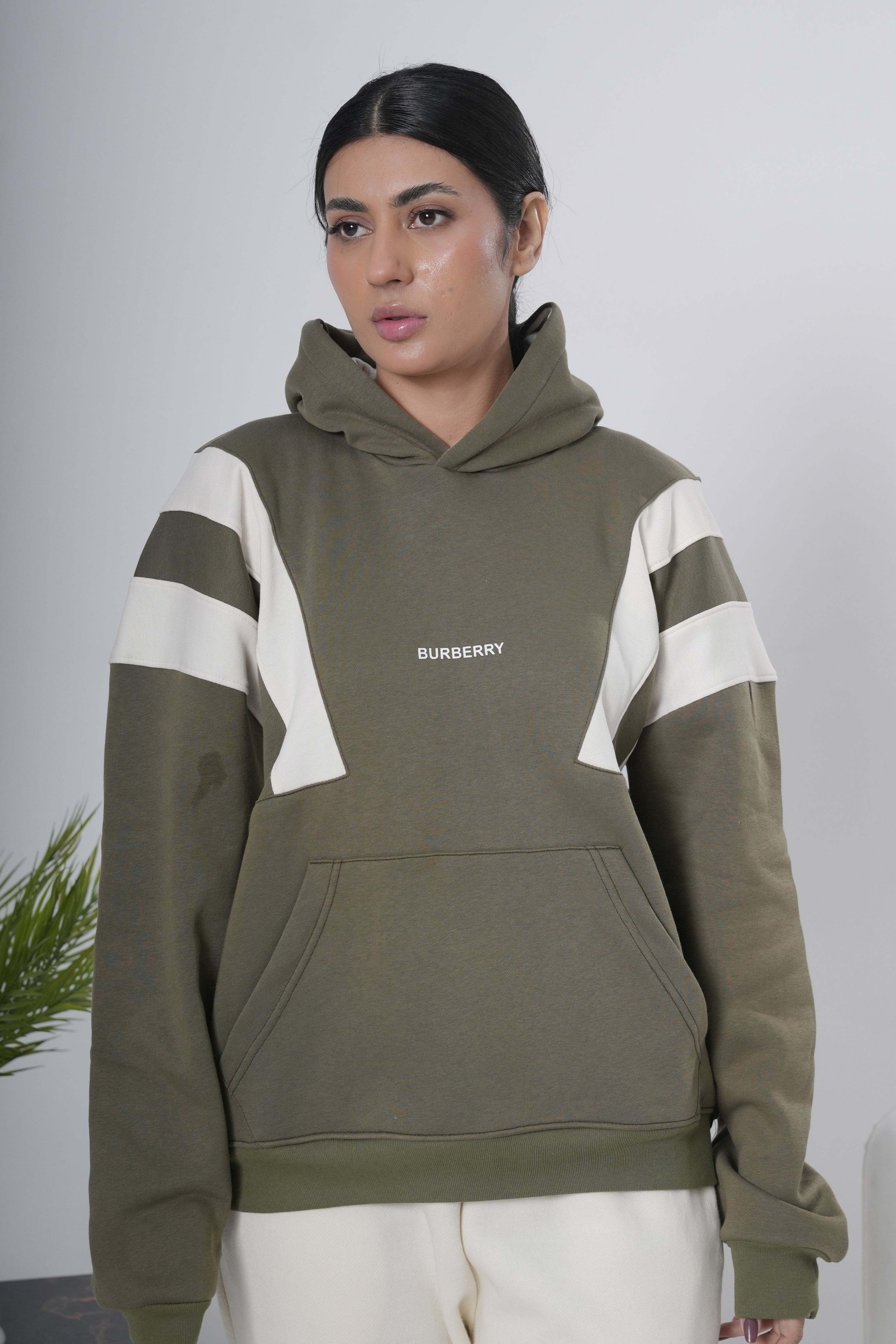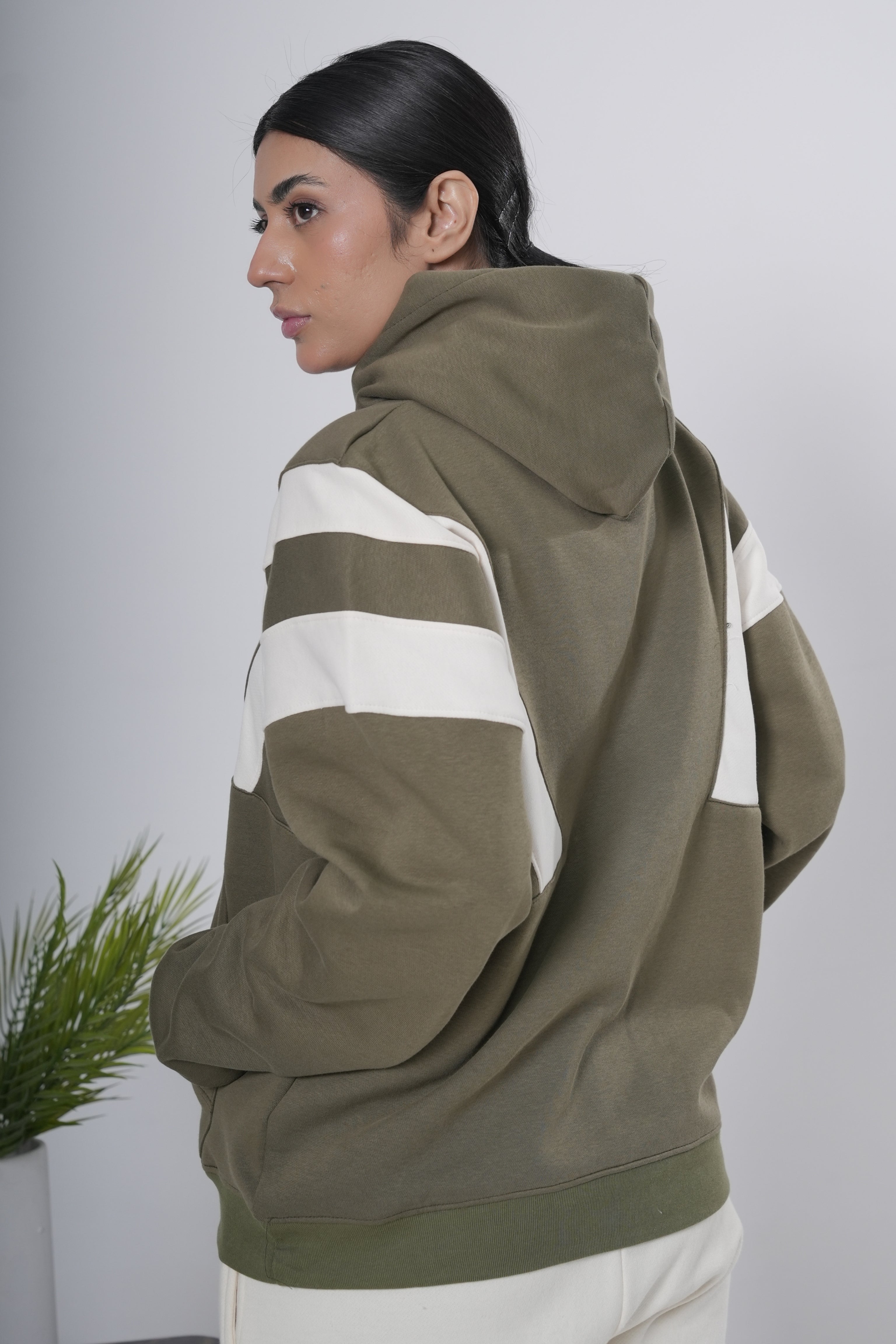 Olive Green & Off-White Block Hoodie