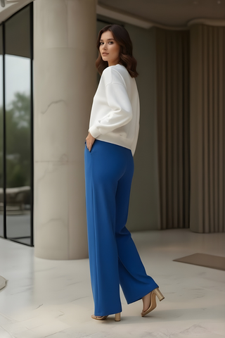 Royal Wave Wide-Leg Trousers - Dark Blue