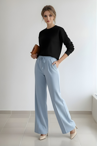 Serene Blue Flow Wide-Leg Trousers - Light Blue