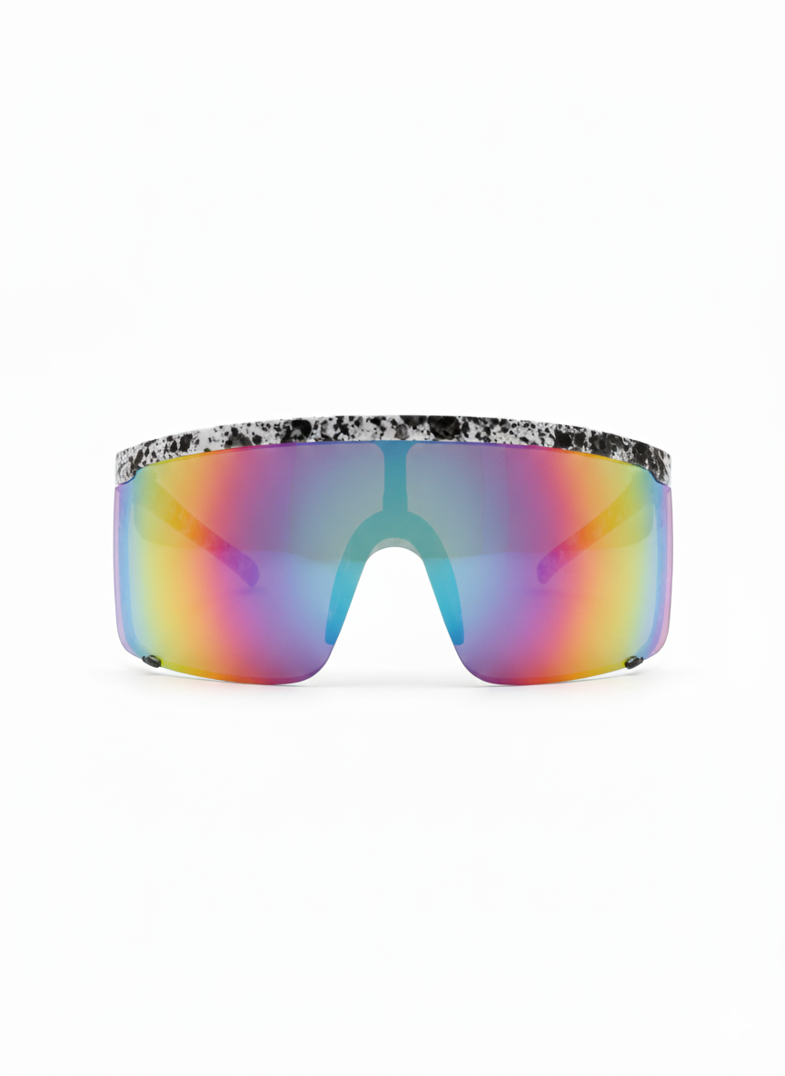 Designed to turn heads with its bold full-lens rainbow tint and speckled frame.
