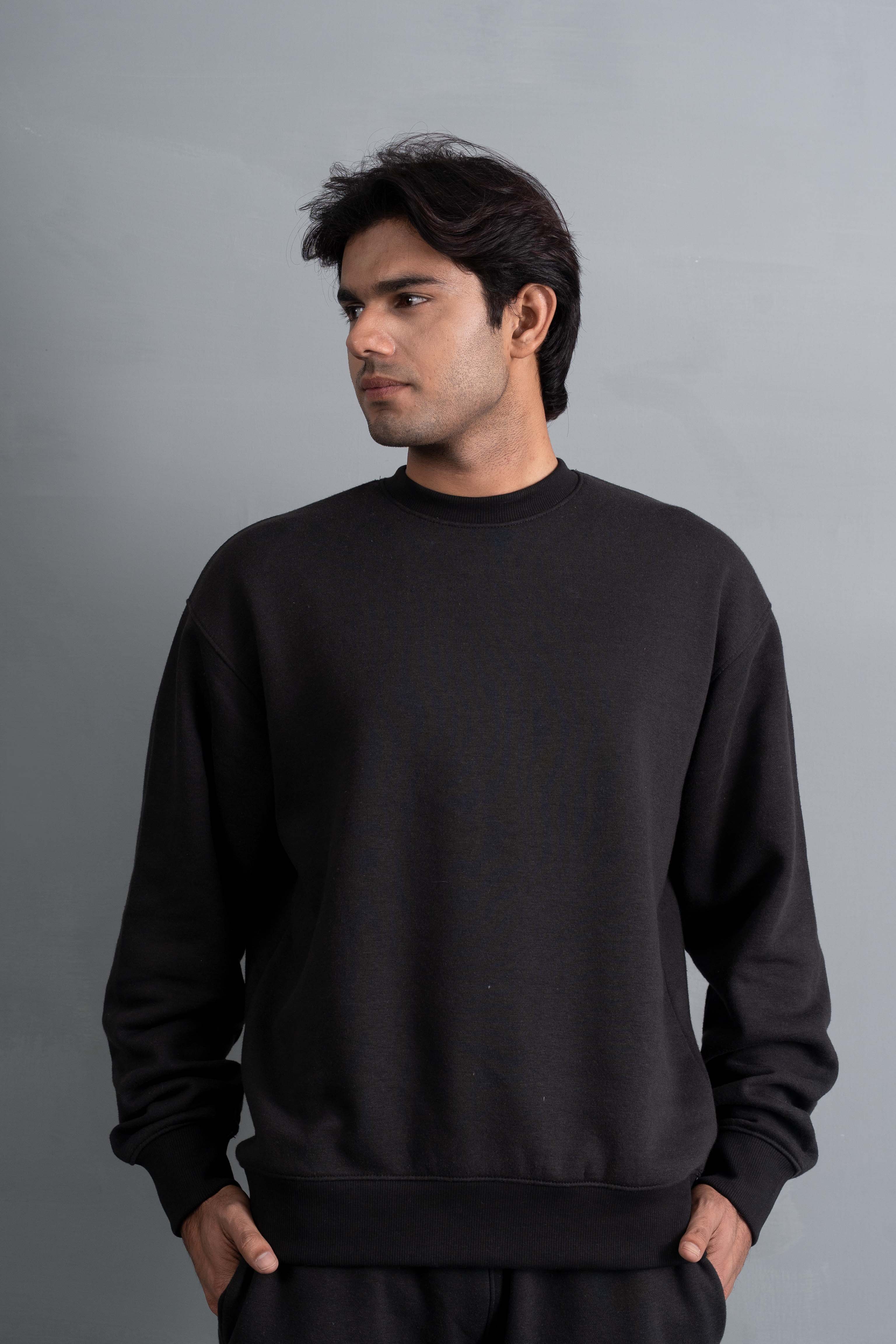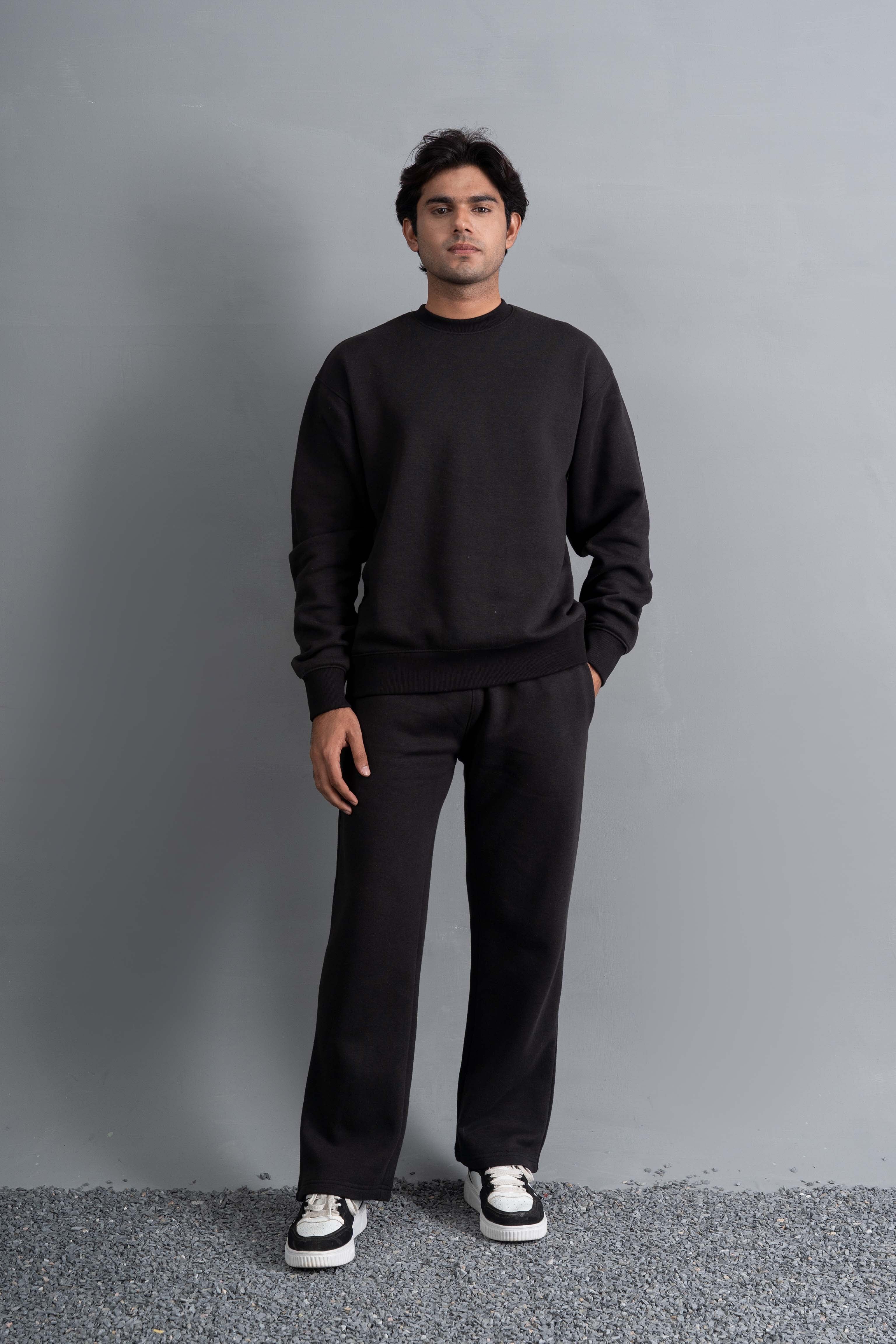 A classic black sweatshirt made for everyday comfort. It has a clean, minimal look with a relaxed fit that works for any casual setting. Soft fabric and ribbed details keep it comfortable and easy to wear all day.