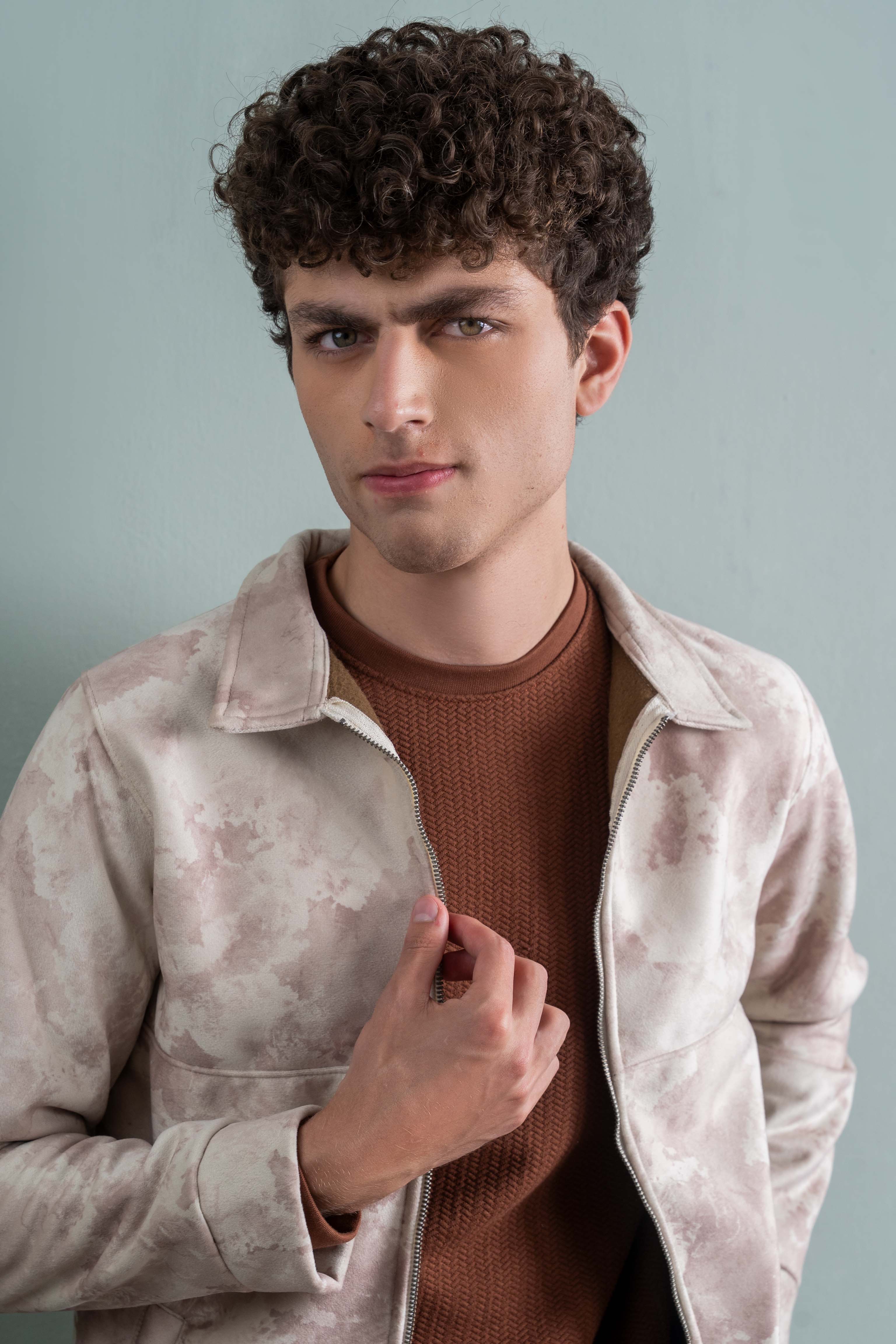 A soft cloud-marble jacket designed for clean everyday styling with a premium feel. The subtle pattern adds depth without overpowering your outfit, making it easy to pair with tees or trousers for a sharp casual look.