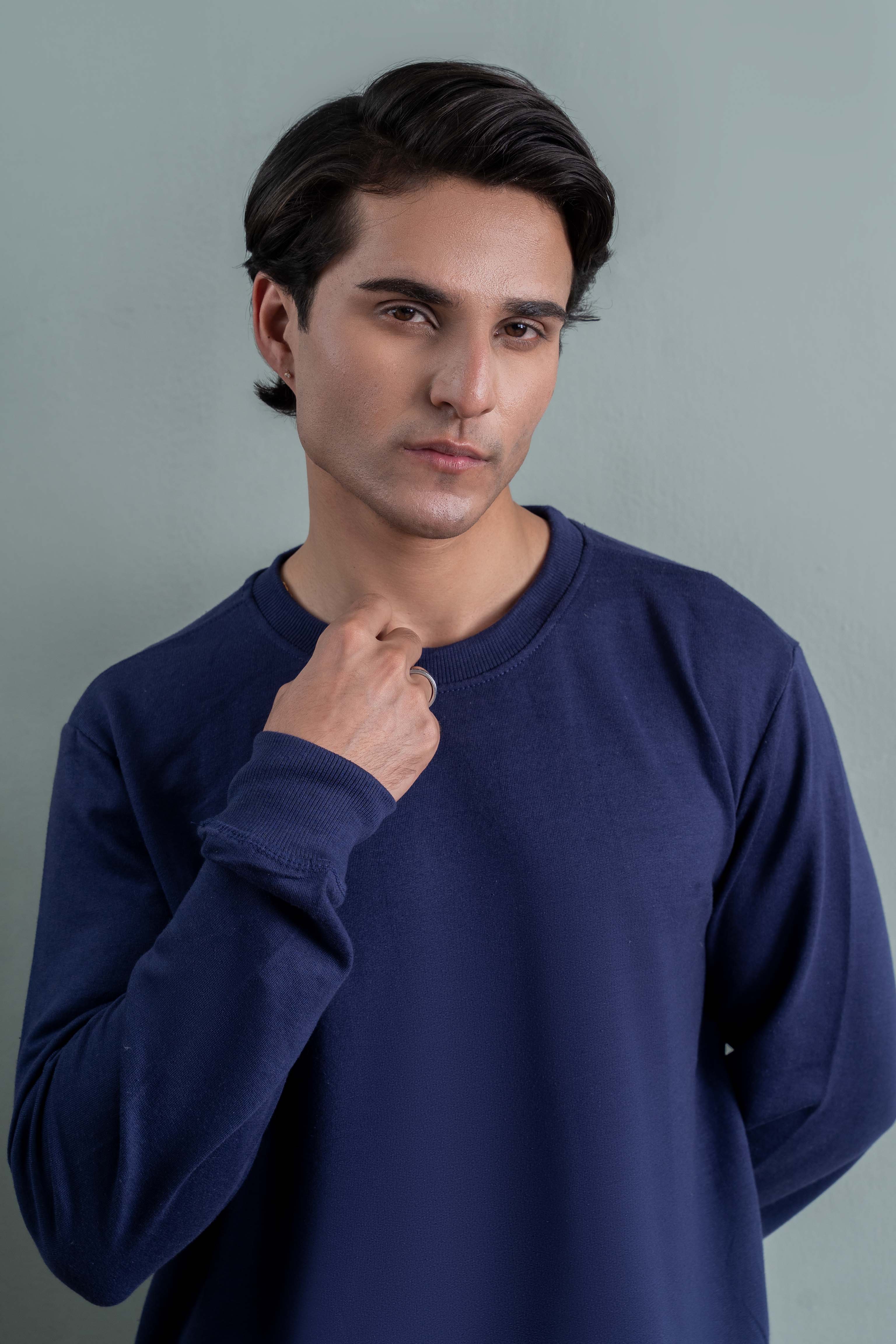 A clean and minimal full-sleeve sweatshirt designed for everyday wear, featuring a smooth deep-blue tone that pairs easily with any outfit.