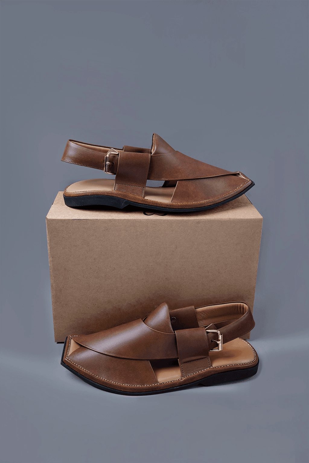 Tan Brown Leather Kaptaan Chappal with Sleek Square Toe Finish