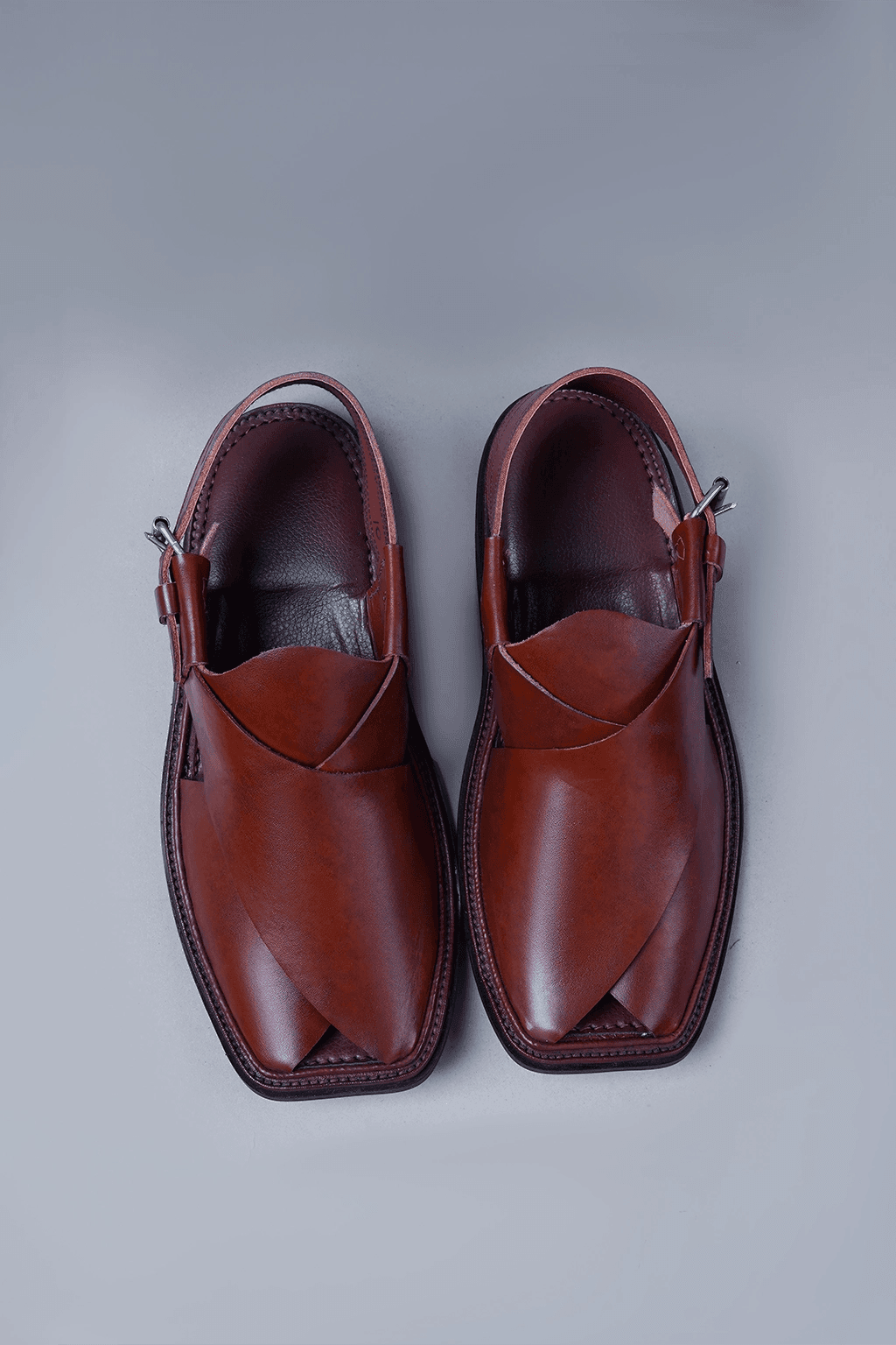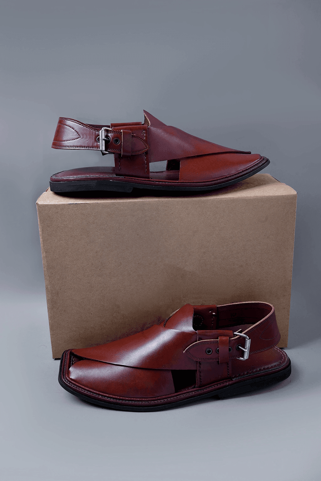 Deep Maroon Charsadda Chappal with Double Side Strap and Fine Stitch Detailing