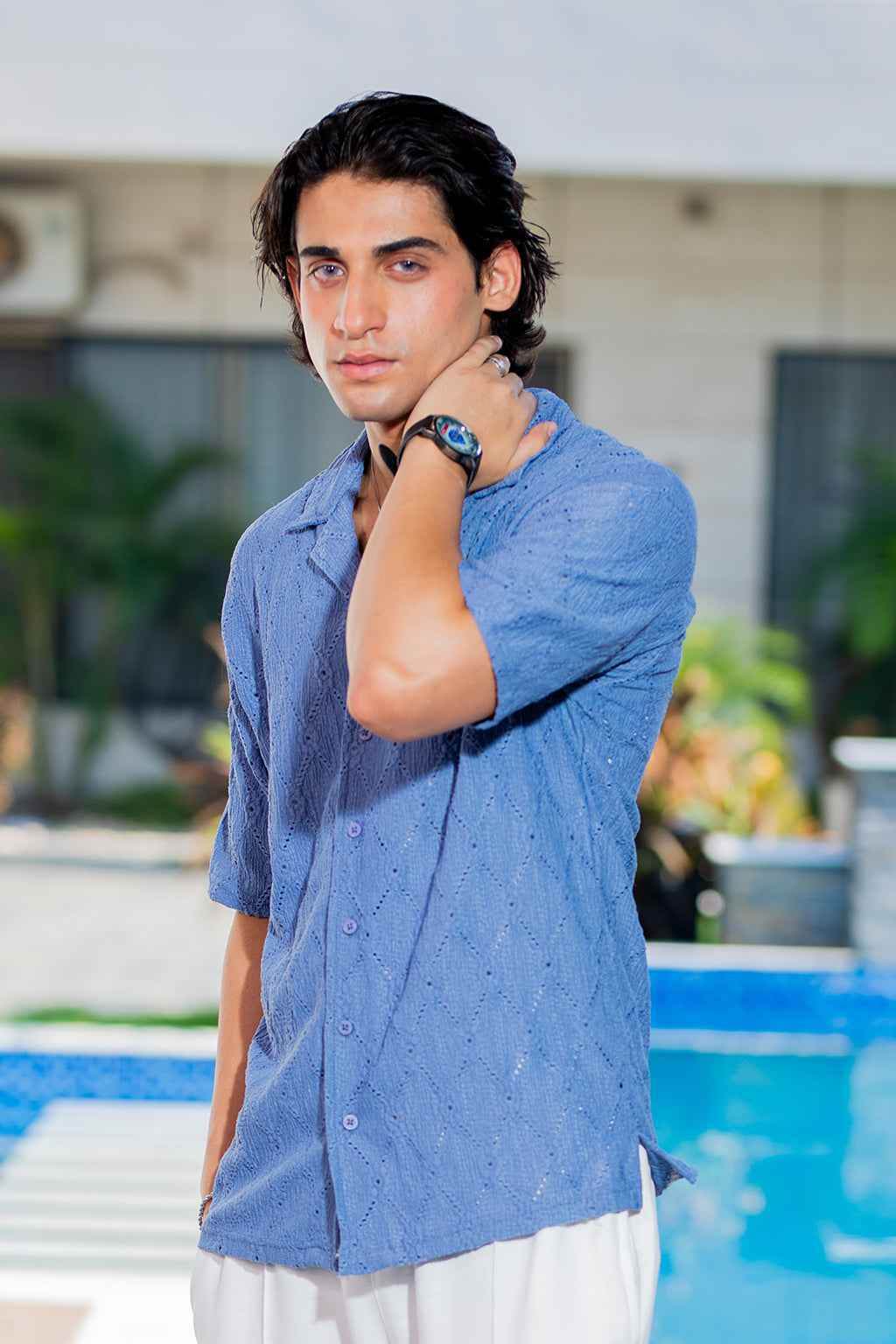 The Blue Mirage Button-Down Shirt is crafted from a soft, breathable fabric that drapes beautifully on your body. The lightweight material allows for optimum airflow, keeping you cool and comfortable throughout the day. Experience freedom of movement that accommodates all activities, from Work meetings to weekend outings.