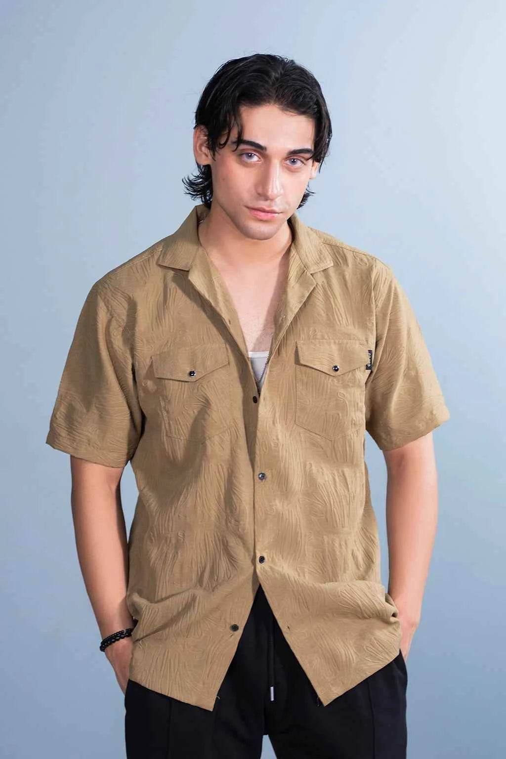 Men's Casual Khaki Shirt - Lightweight & Breezy Textured Design