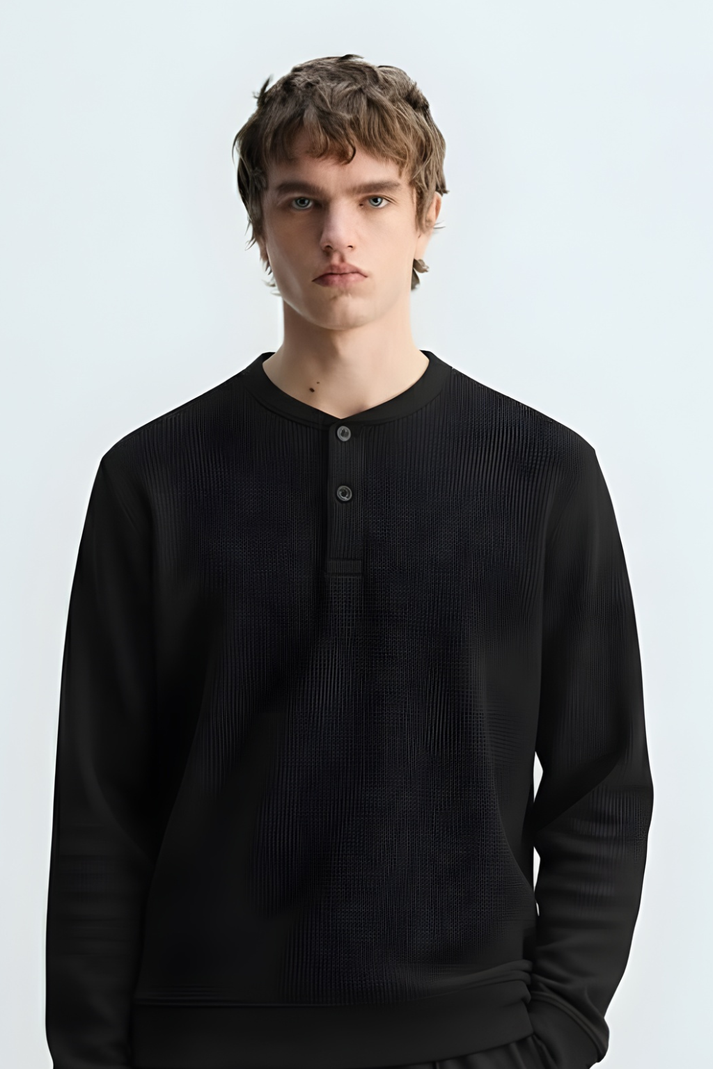Classic Button-Neck Black Sweatshirt