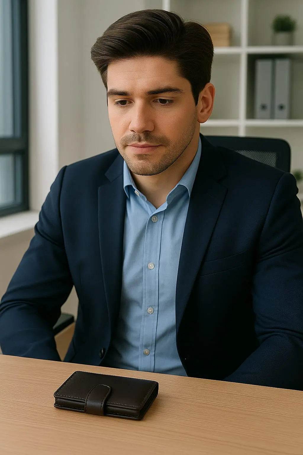 Polished, practical, and built for the professional – this Black leather wallet is designed to keep your essentials safe while maintaining a refined look. With its structured flap closure and smart compartments, it’s the perfect companion for business and daily life.