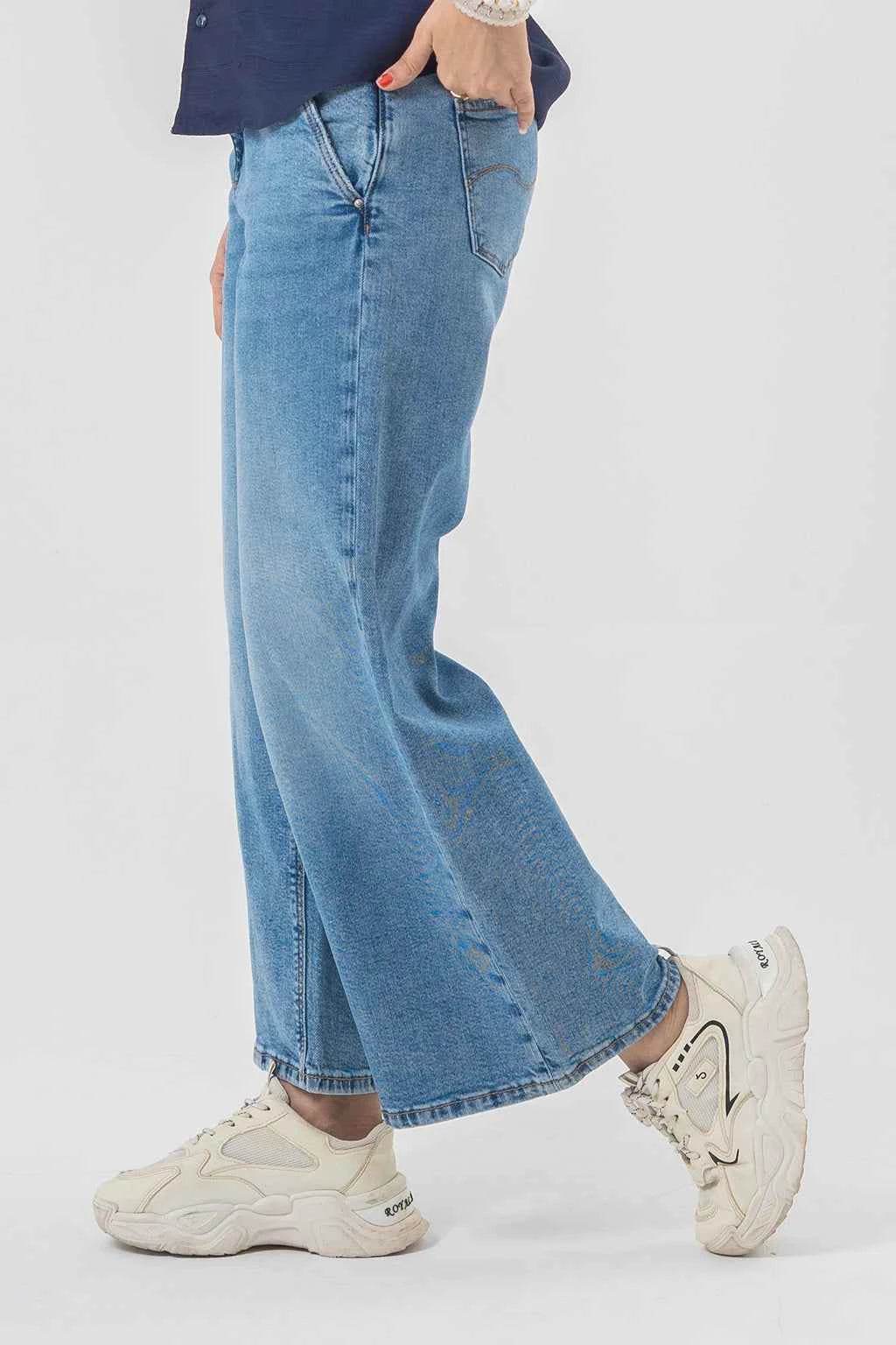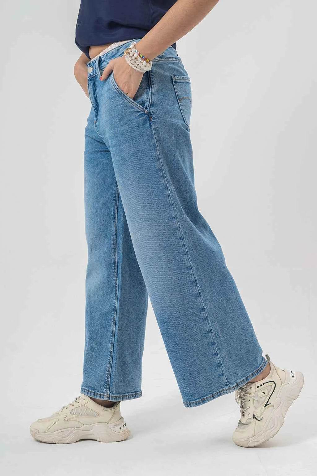 Trendy Wide-Leg Blue Jeans for a Bold Casual Look
